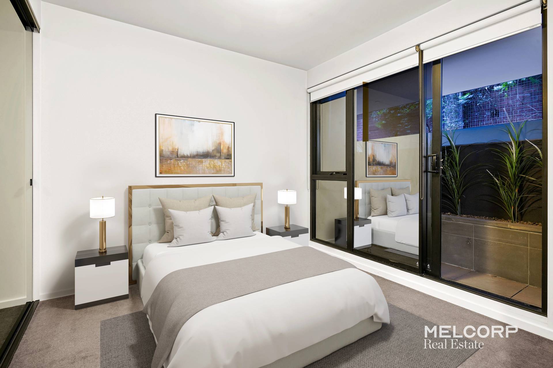 The serenely quiet bedroom boasts a private courtyard and spacious dimensions with elegant tinted mirrored built-in robes providing ample storage. While the lavish bathroom with striking rain shower and designer luxe Grohe black chrome tapware all come together to produce a sophisticated living experience. Additional features of this captivating residence include a laundry area, premium concealed heating and cooling system, colour video intercom security system, and highly sought after undercover and secure car parking space.