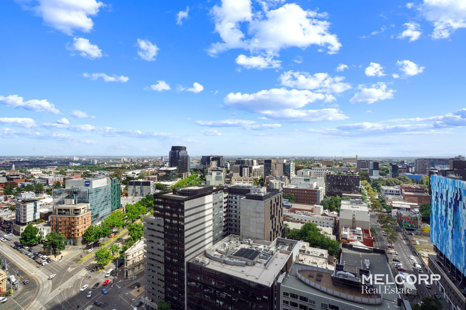 Enjoy larger-than-life north-facing views over Queen Victoria Market and the leafy Elizabeth Street boulevard, flowing beautifully into the spacious bedroom with mirrored built-in robes and study nook, as well as the open-plan meals and living area equipped with split-system heating and cooling.