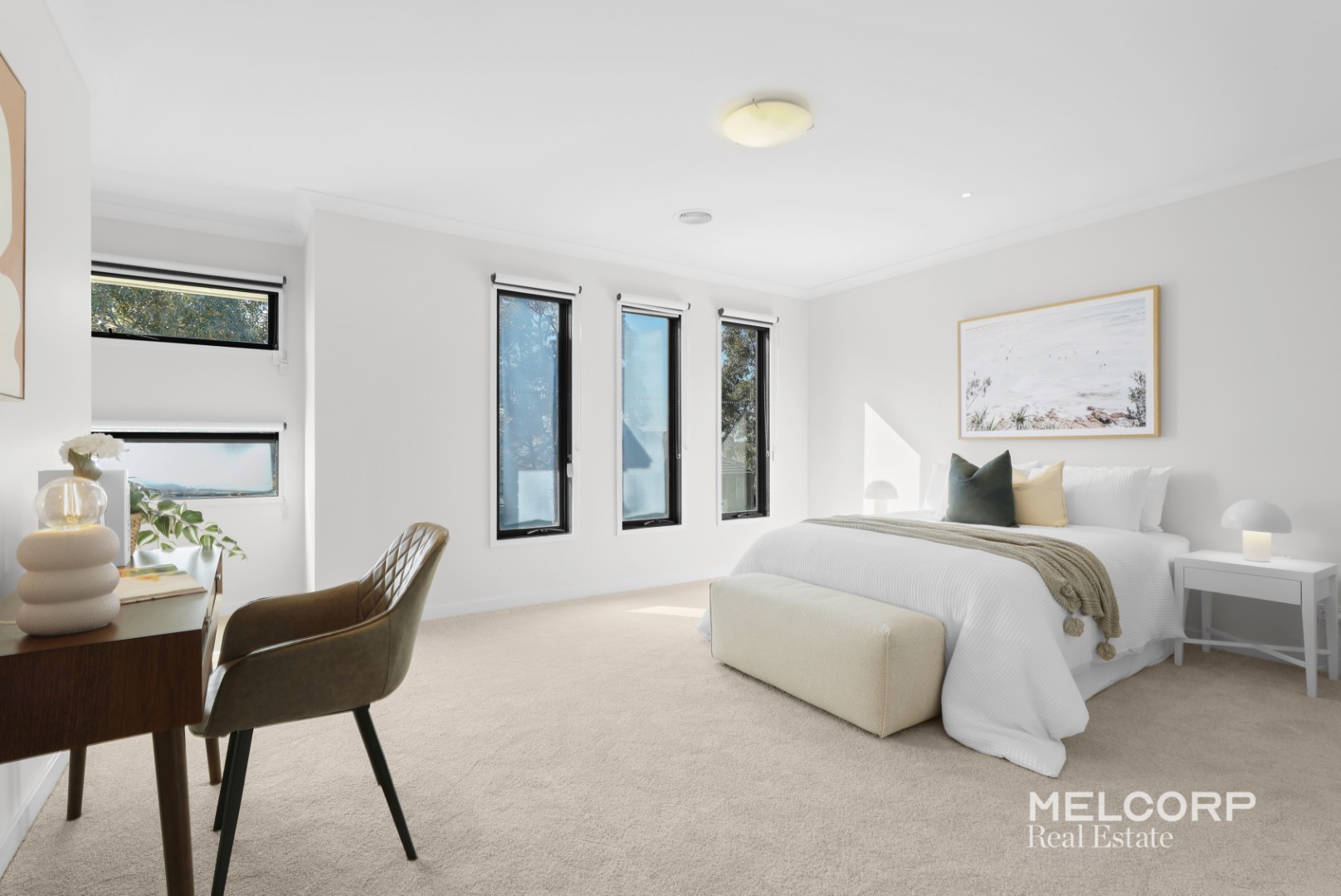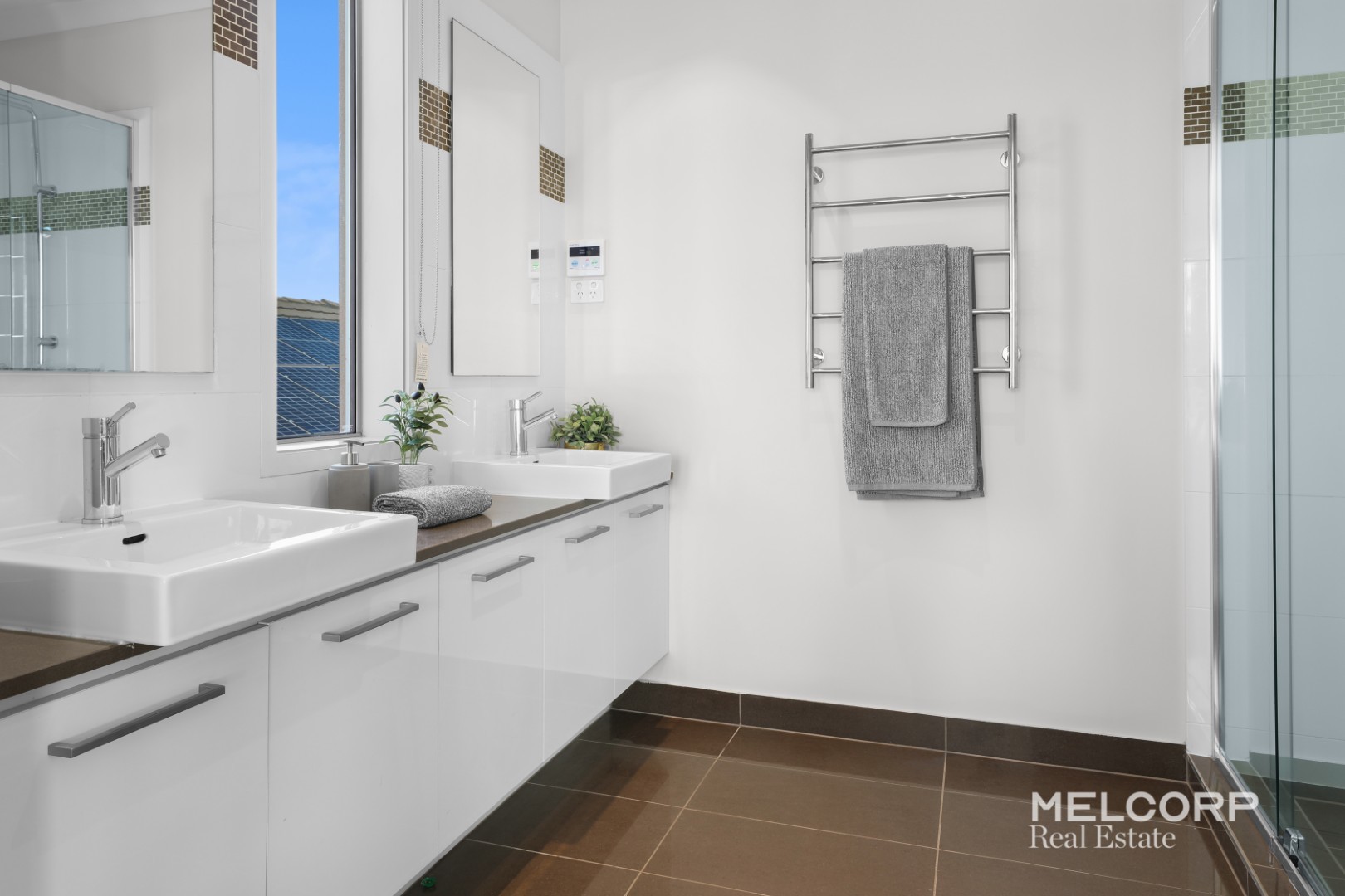 Four spacious upstairs bedrooms with robes, including master suite with walk-in robe and ensuite featuring dual vanities