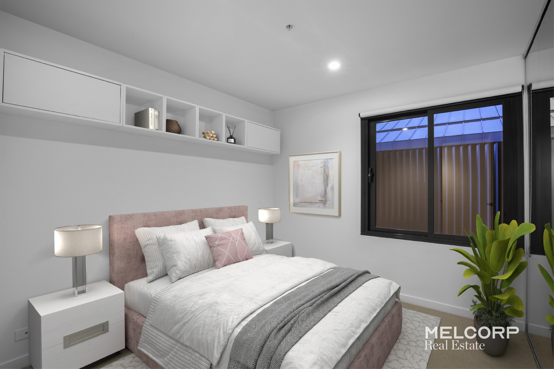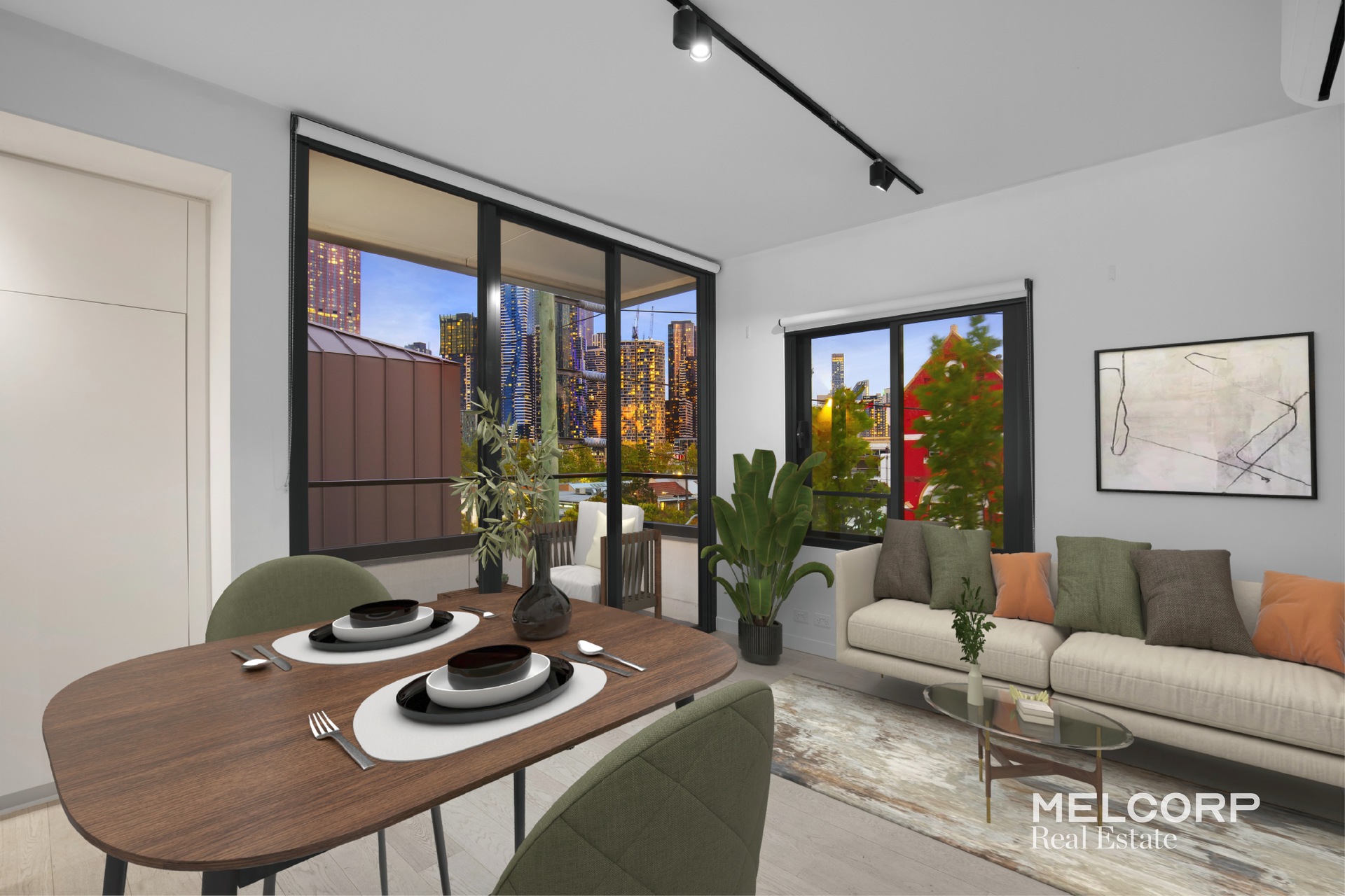 An open plan living and dining area framed by 2.7m high ceilings with sleek track lighting and gorgeous white oak floorboards lead out to a private under cover terrace which offers a charming sanctuary from which you’ll enjoy the sparkling City skyline and tree-lined street scape. While the generous double bedroom is graced with comfortable wool-blend carpets and an elegant mirrored built-in-robe providing ample storage.