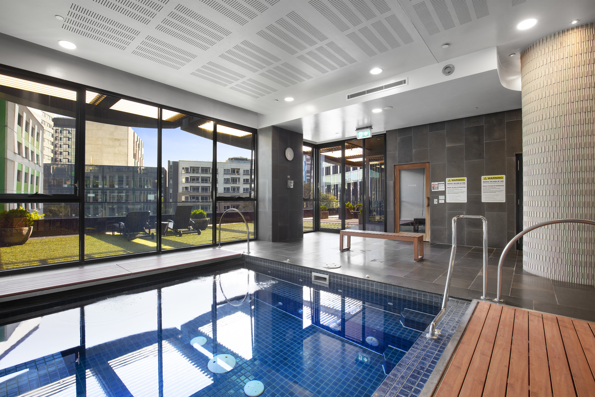 Residents enjoy access to an impressive suite of amenities, including a fully-equipped gym, indoor pool, sauna, spa, resident lounge, communal kitchen, and a sun-drenched alfresco terrace.