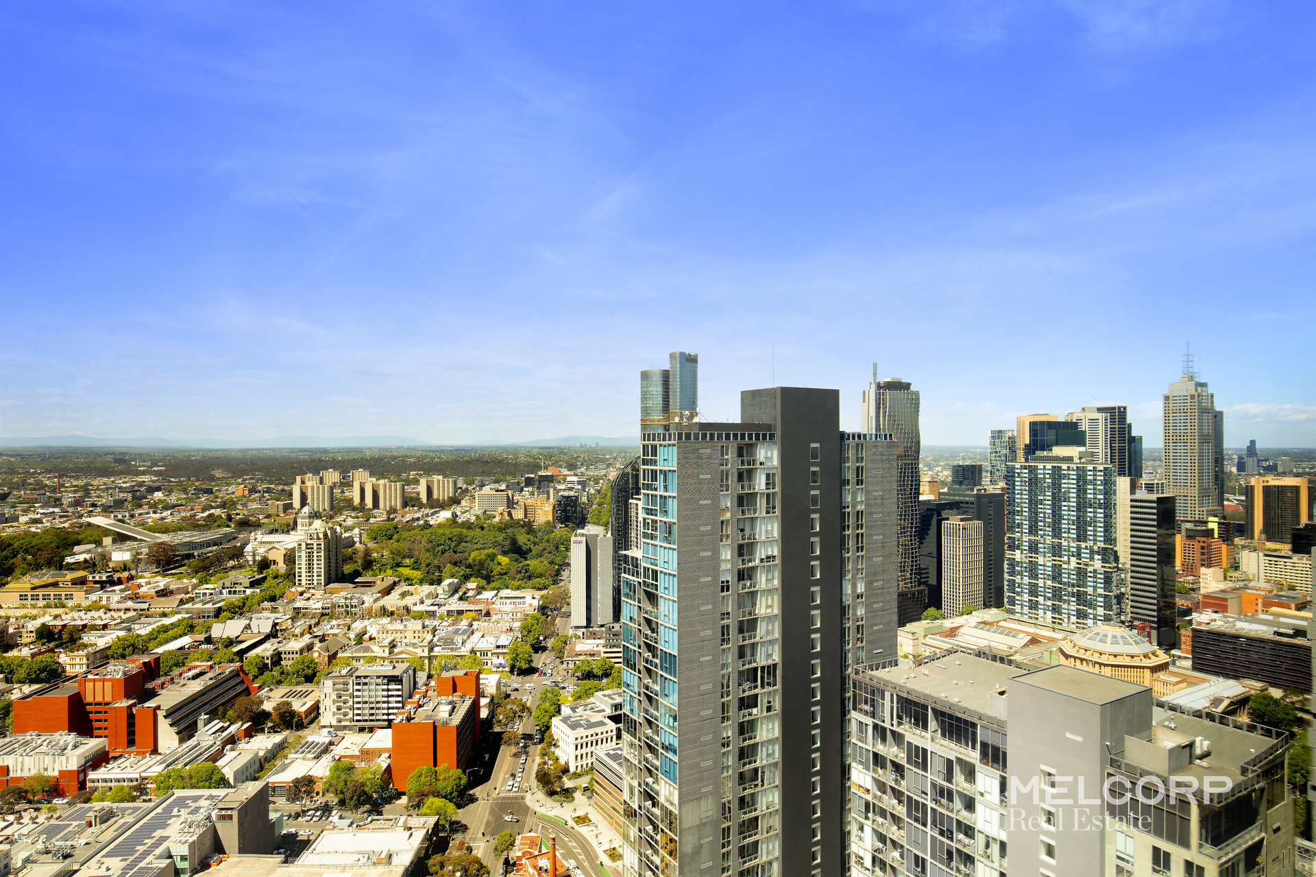 Oriented to the north and east, the apartment commands sweeping vistas across Flagstaff Gardens, Carlton Gardens and the majestic Dandenong Ranges. Its prized location ensures unmatched convenience, just moments from Queen Victoria Market, Melbourne Central, Emporium and QV. Esteemed universities – including RMIT and The University of Melbourne – are within easy reach, while an abundance of acclaimed eateries and vibrant cafés are located at your doorstep. Effortless connectivity is assured with nearby tram and train links offering swift access throughout the CBD and beyond.