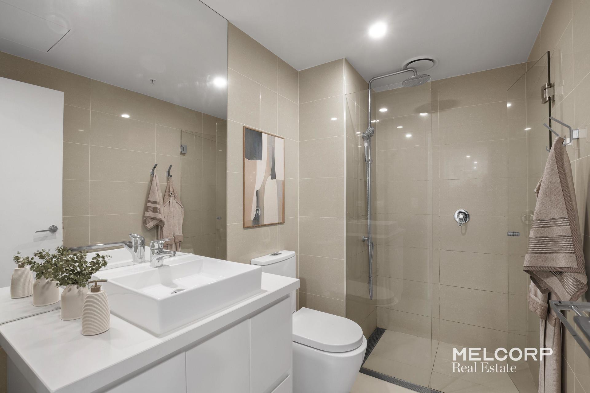 The bedrooms with built-in robes are separated by the entry and are both only steps away from the exemplary rain shower bathroom which is dominated by floor-to-ceiling tiling. Other apartment features include a concealed laundry, reverse cycle heating and cooling, secure intercom entry, and secure car space.