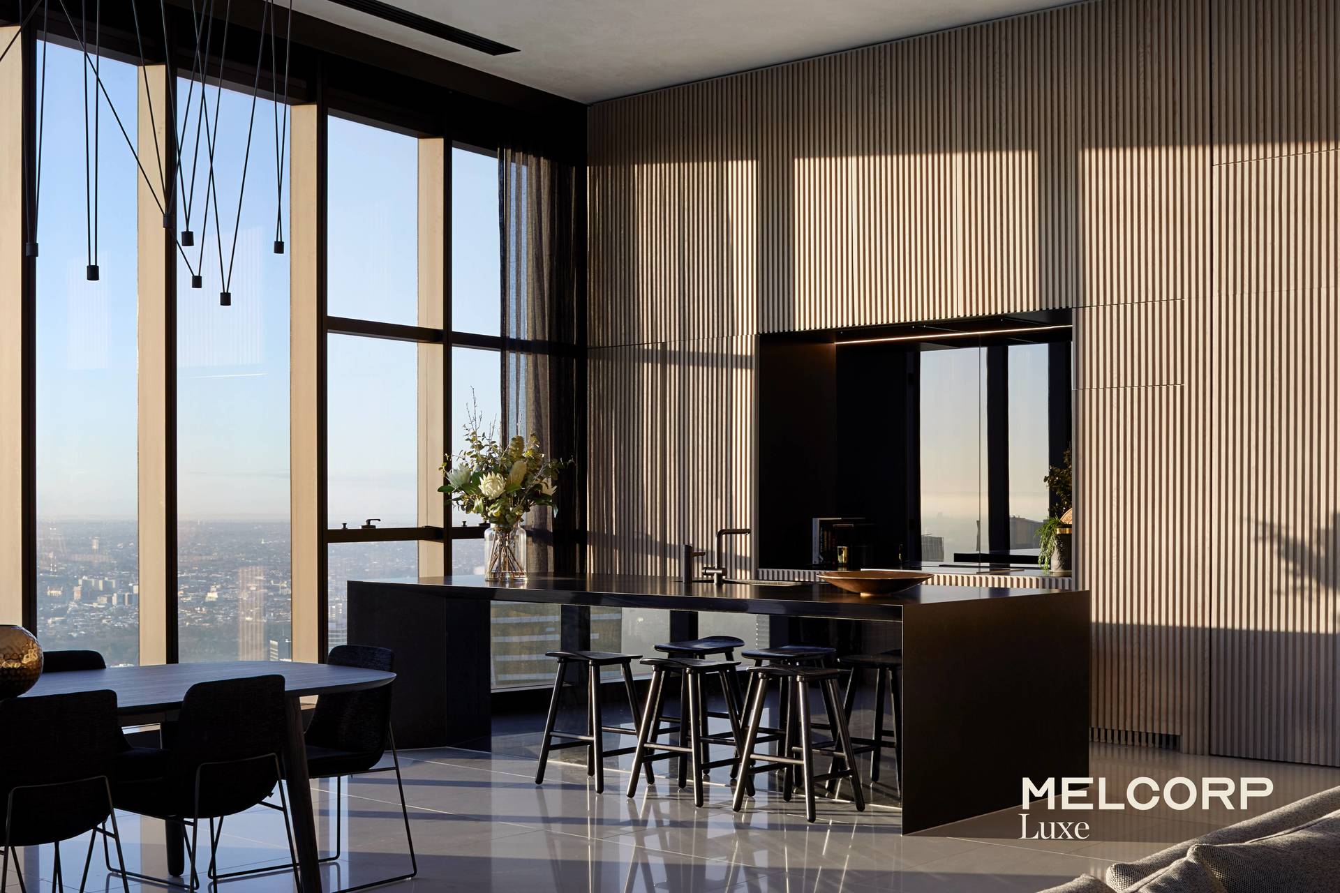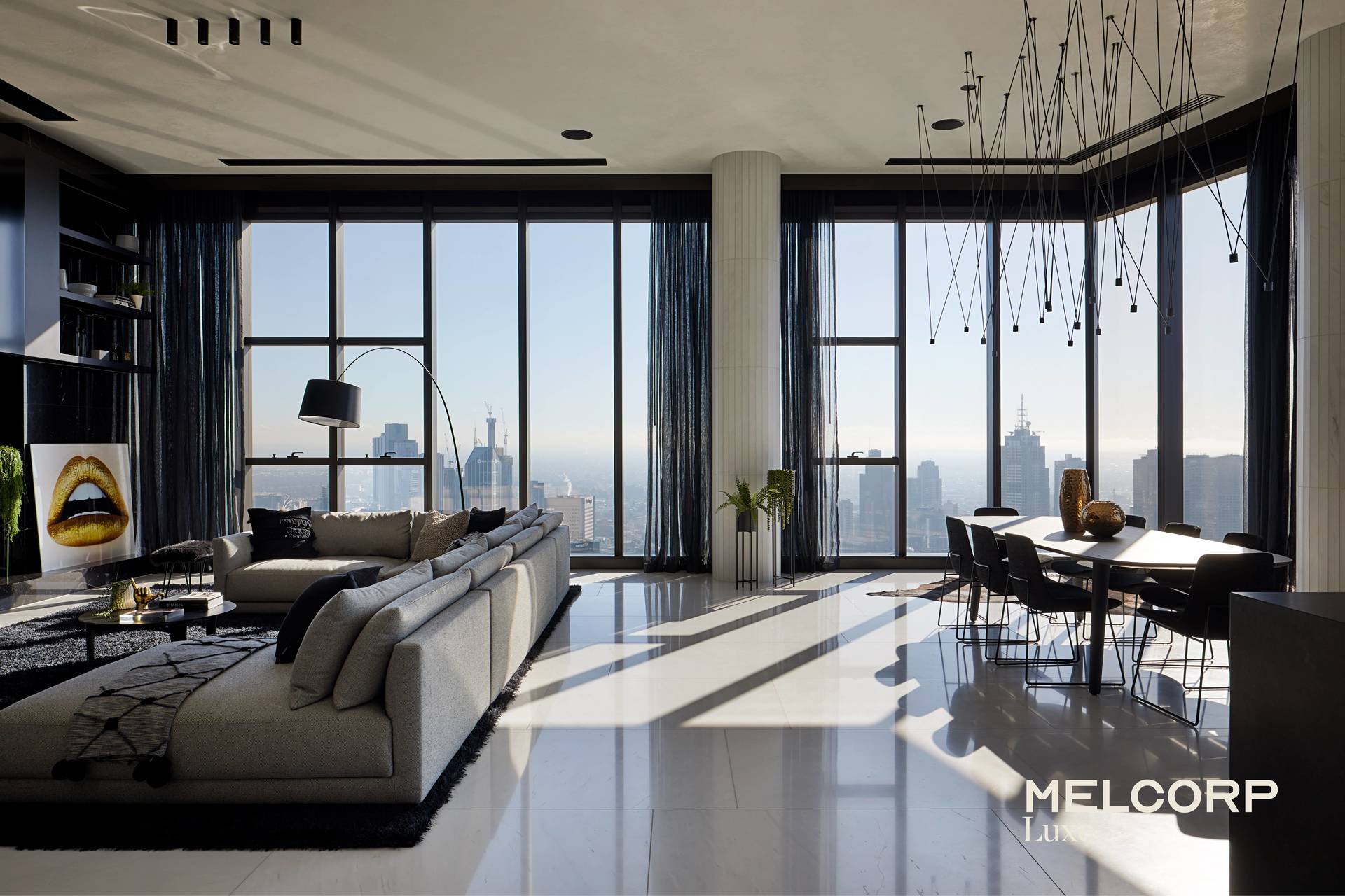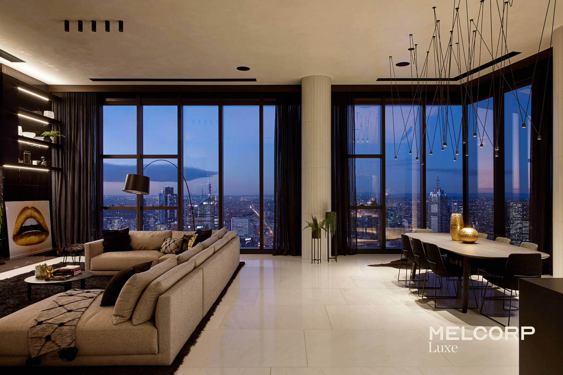 You’ll be utterly awe-struck the second you step inside this 65th floor apartment, with the enormous and free-flowing central living and dining zone promising sublime flooring, incredible natural light, towering ceilings, designer lighting, and floor-to-windows which act as a frame for the spectacular views. These breathtaking views surely cannot be beaten anywhere in Melbourne, and take in the surrounding tall CBD buildings and mountain ranges in the distance.