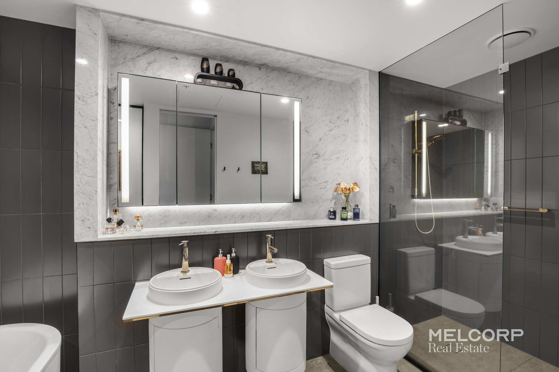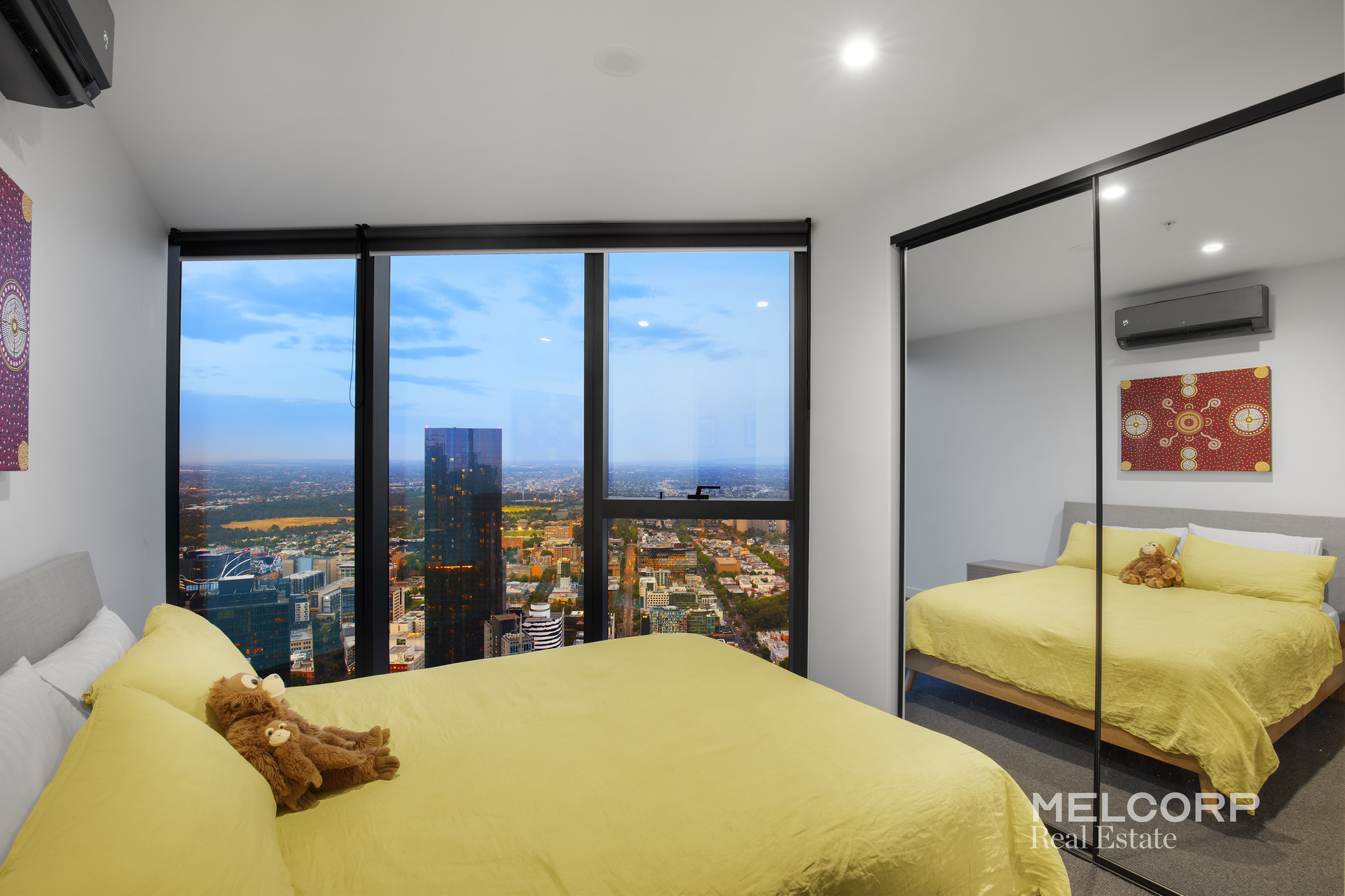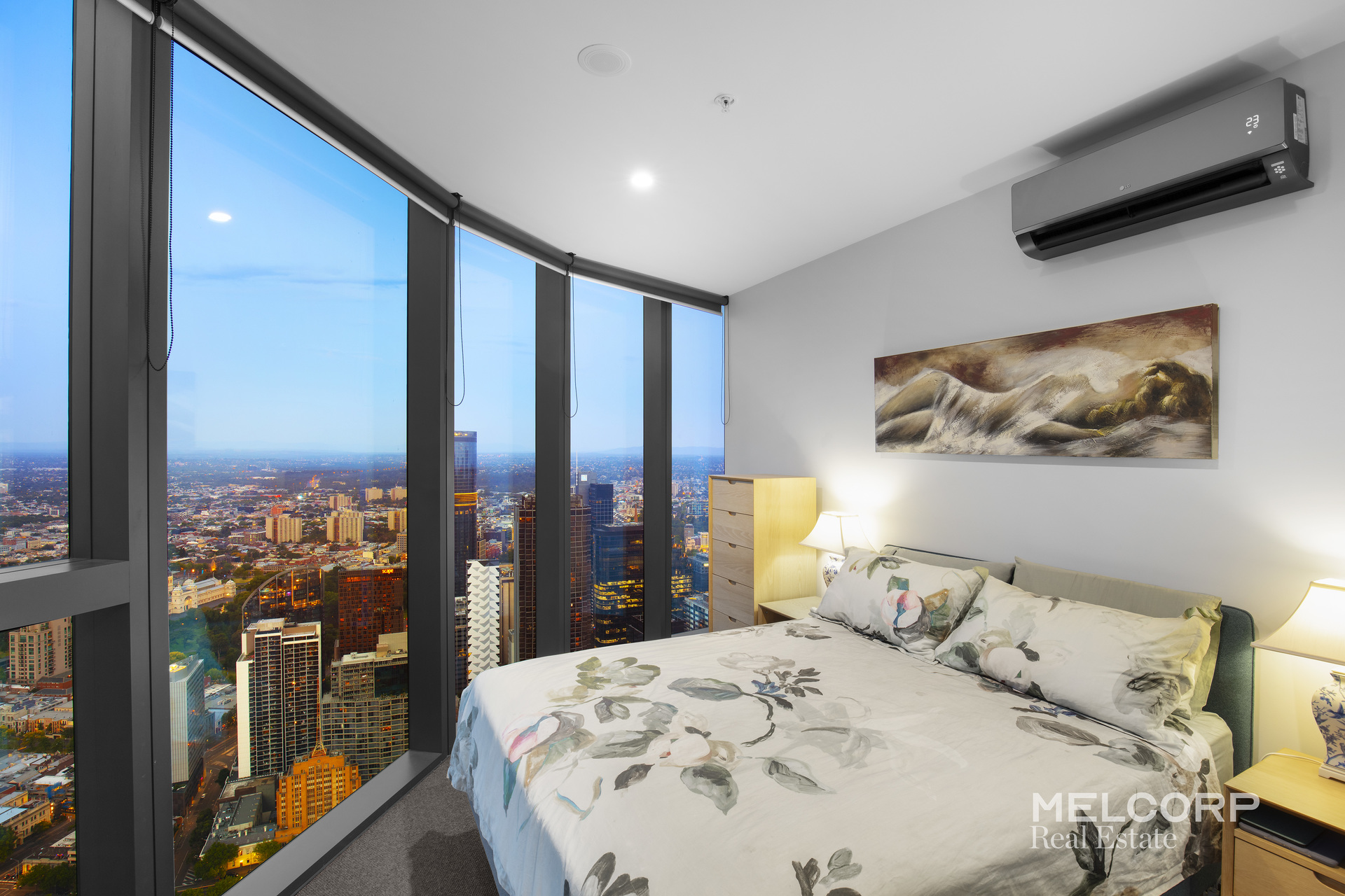 – Three well-proportioned bedrooms, all with built-in robes, plush carpeting, uninterrupted outlooks across Melbourne’s CBD, and air conditioning to each bedroom, ensuring year-round comfort.