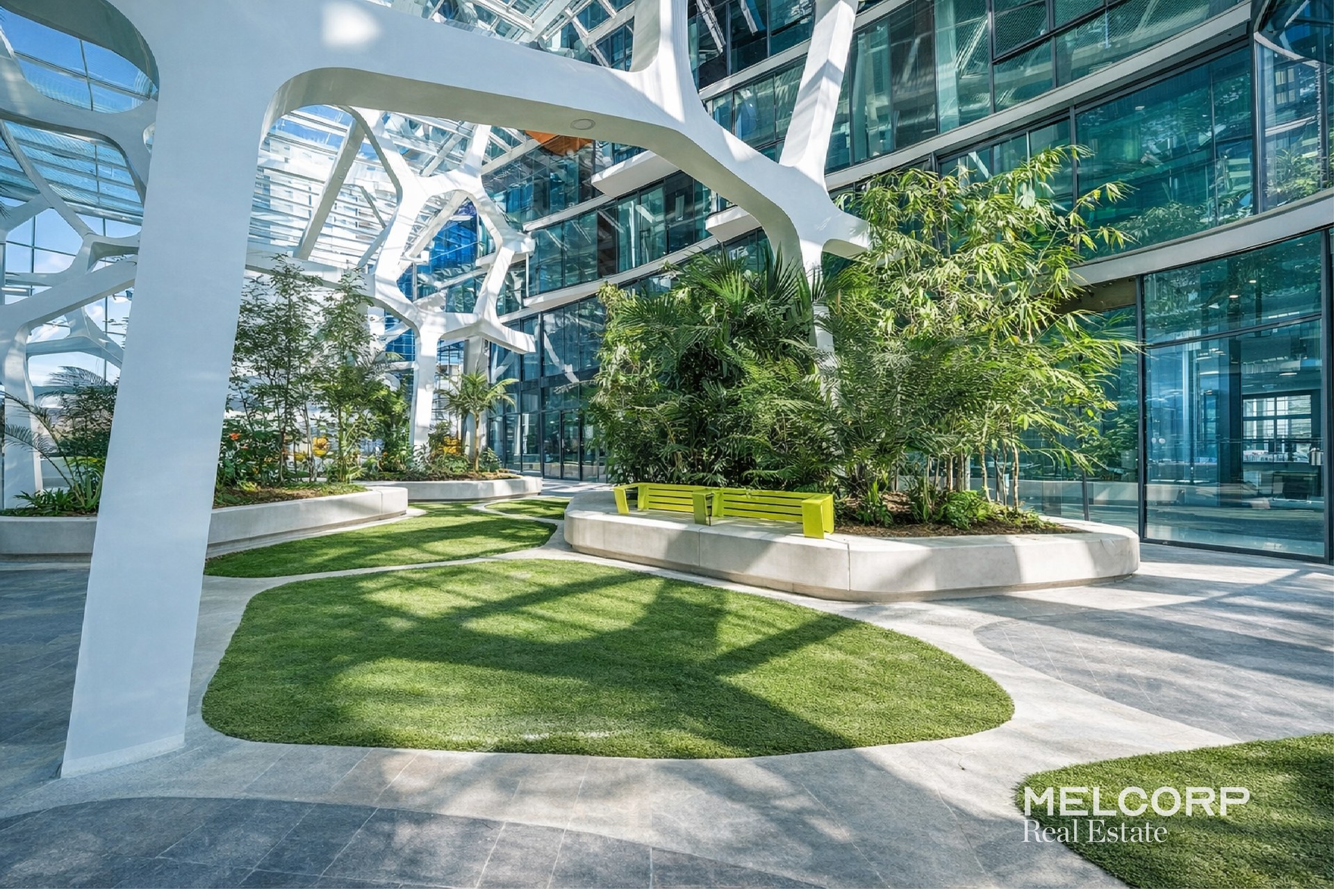 This generously proportioned apartment offers two spacious bedrooms and two modern bathrooms, alongside a bright and expansive open-plan living and dining area. Air conditioning and large windows invite abundant natural light while framing sweeping urban views.