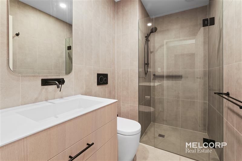 Upon entry, one is greeted by a chic living and dining area that seamlessly flows onto an expansive balcony, providing uninterrupted vistas to the east open view of the Dandenong Range mountain. The kitchen is a haven for culinary enthusiasts, featuring sleek stone countertops, mirrored splashbacks, and elegant cabinetry complemented by stainless steel appliances.