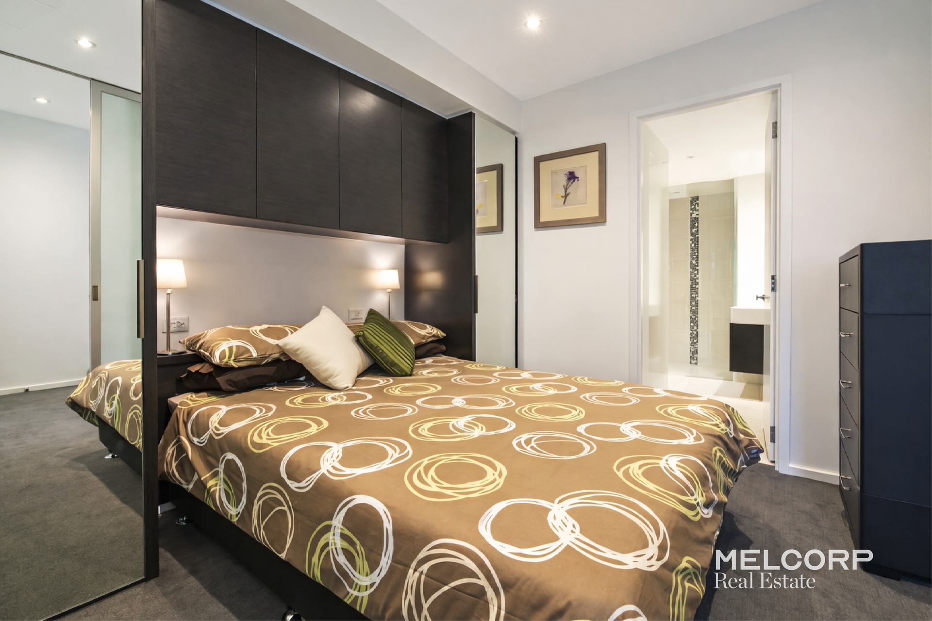 – Bedroom with mirrored built-in robes