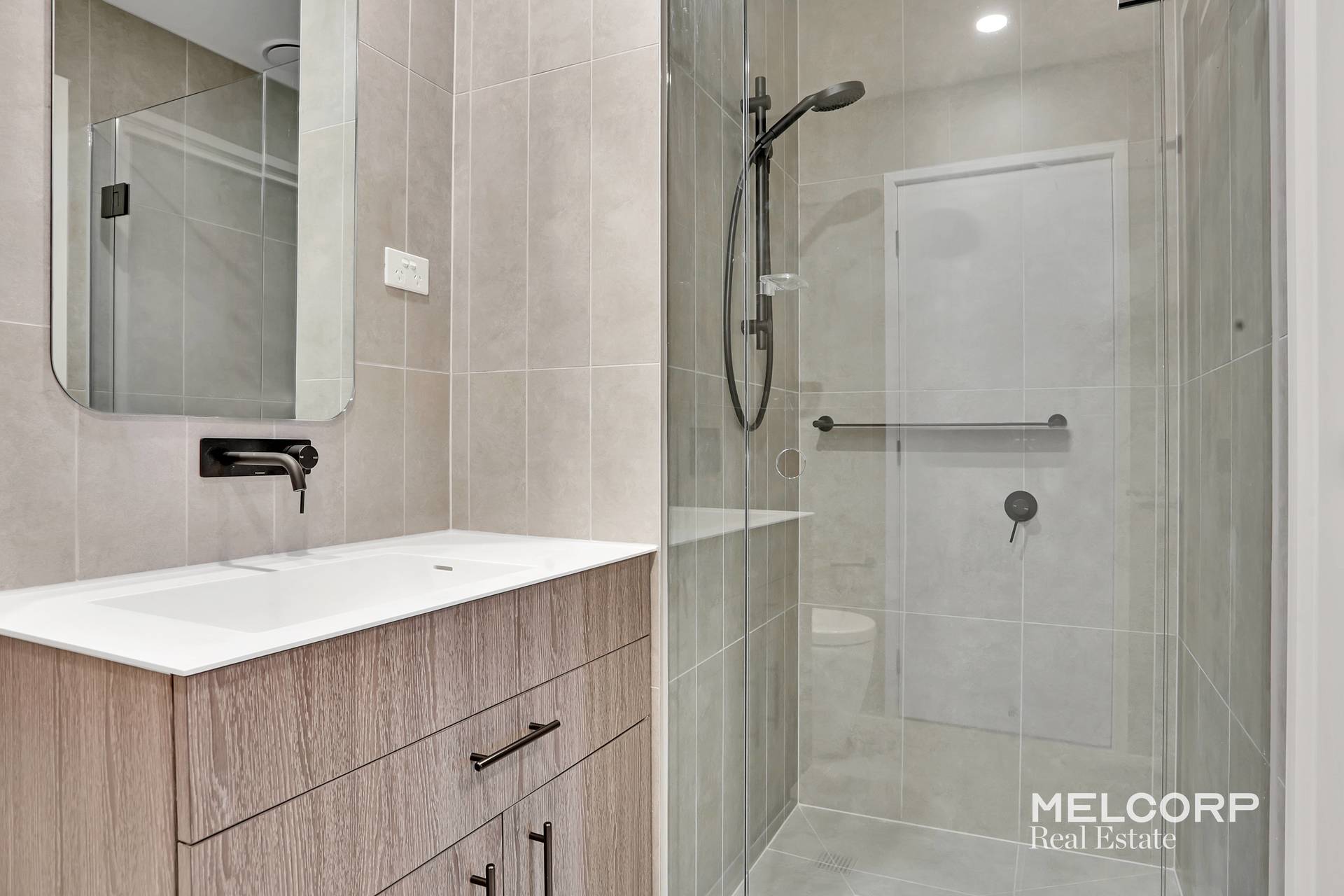 – Central bathroom with floor-to-ceiling tiles