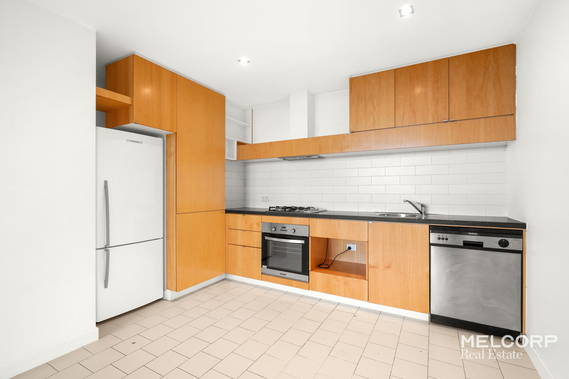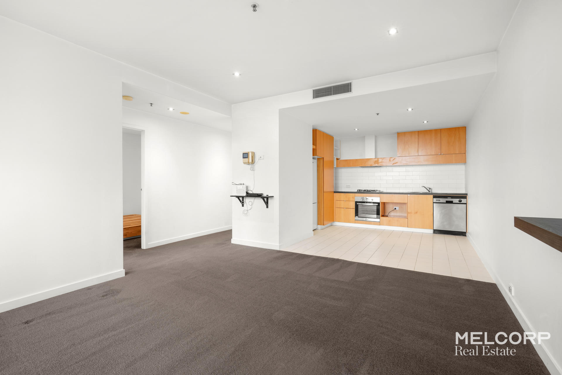 The apartment is unfurnished with whitegoods and features: