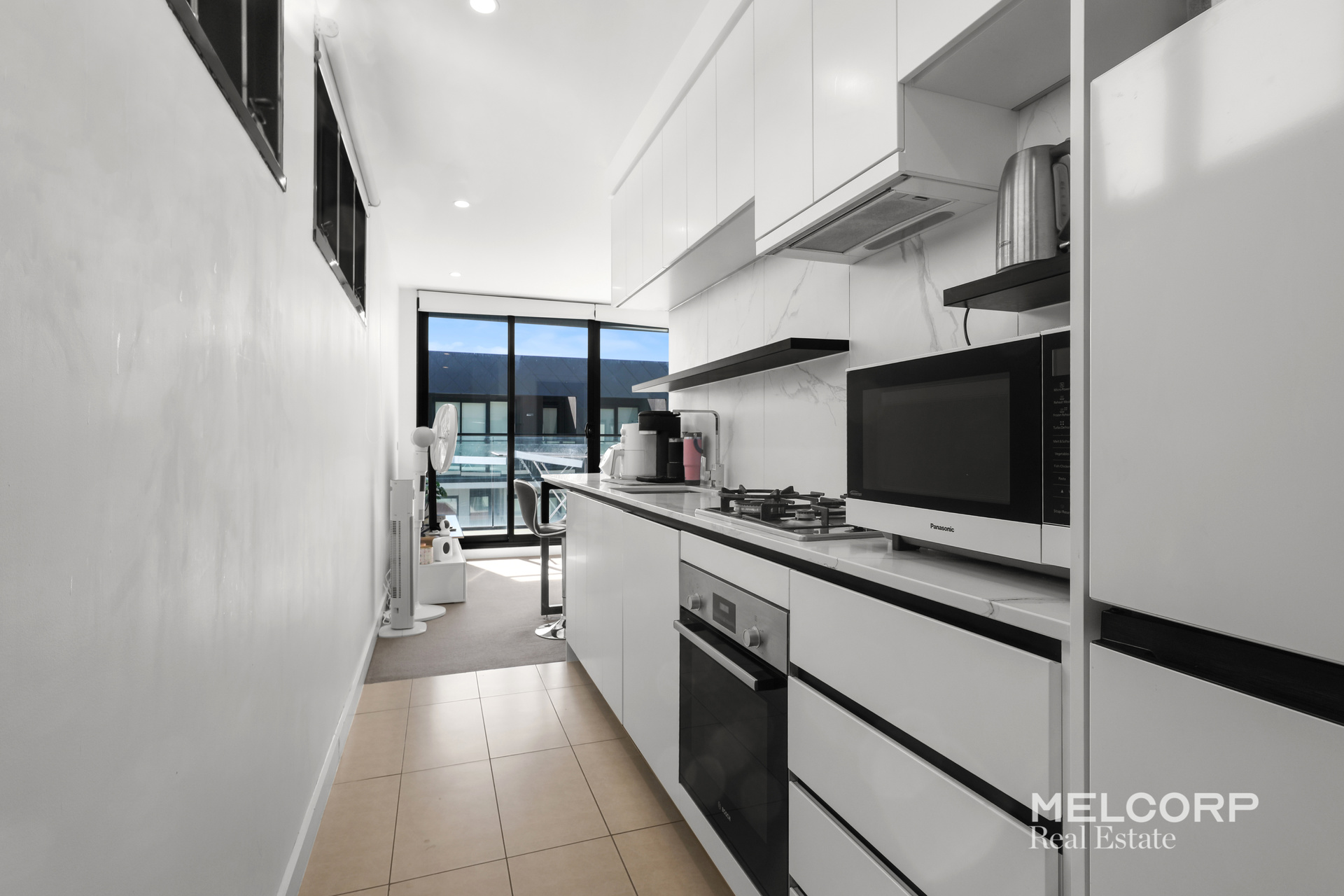 Situated to capture north‑facing natural light, the apartment features a spacious open‑plan living and dining area, seamlessly flowing into a modern kitchen to create a comfortable and inviting living space.