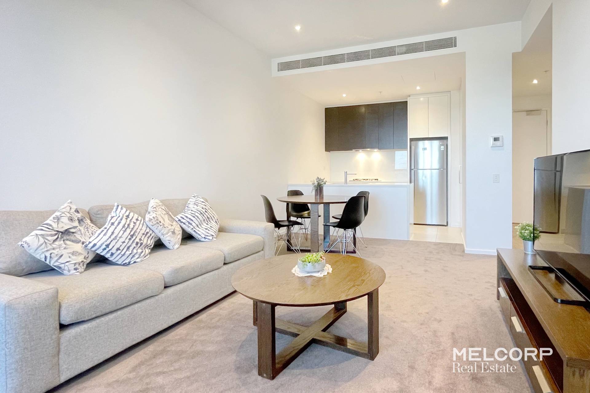 Ascending to the 45th floor, this elegant apartment commands a superior easterly view of Albert Park Lake, MCG, and the striking Melbourne skyline. A perfect place to call home.